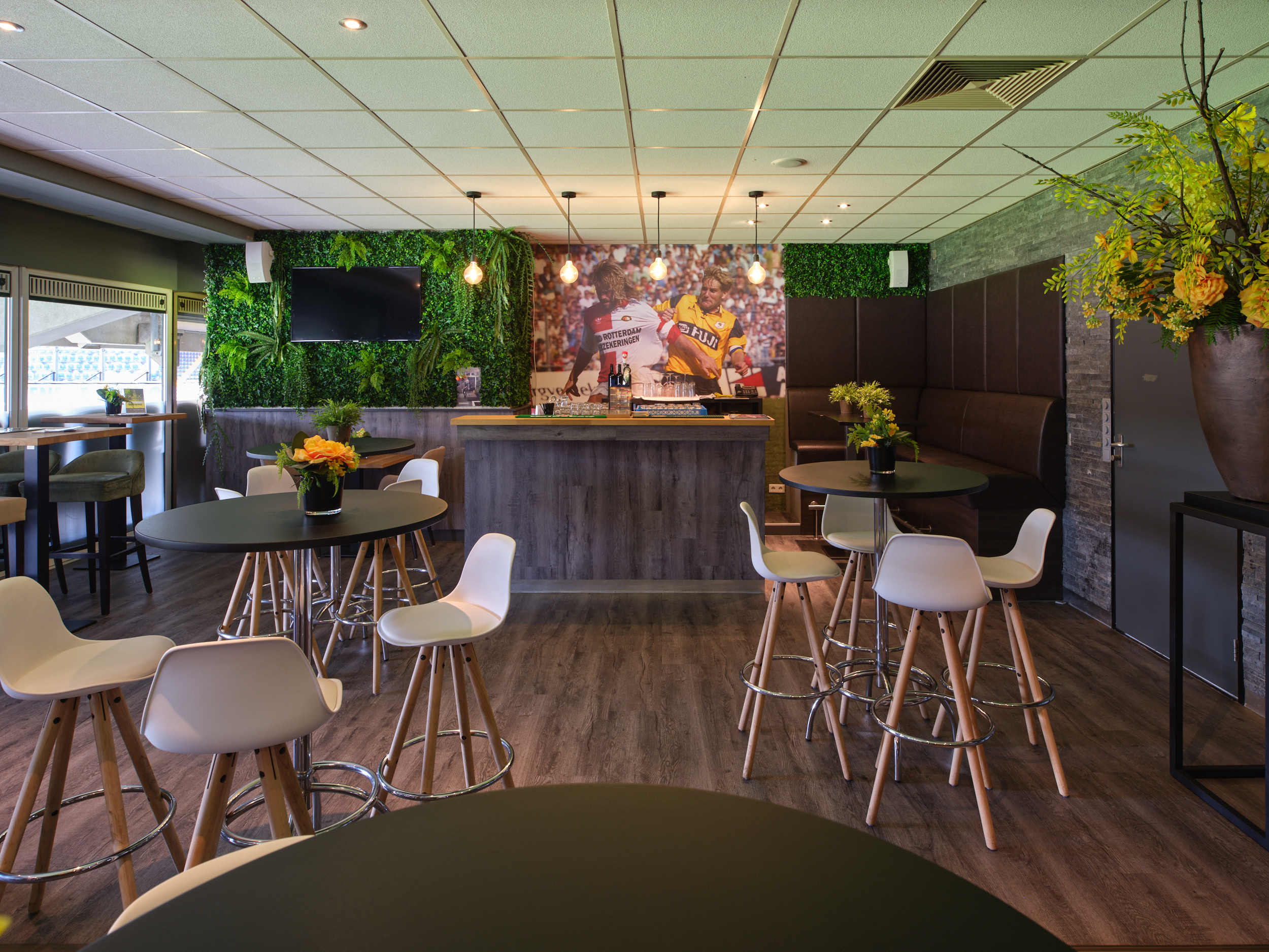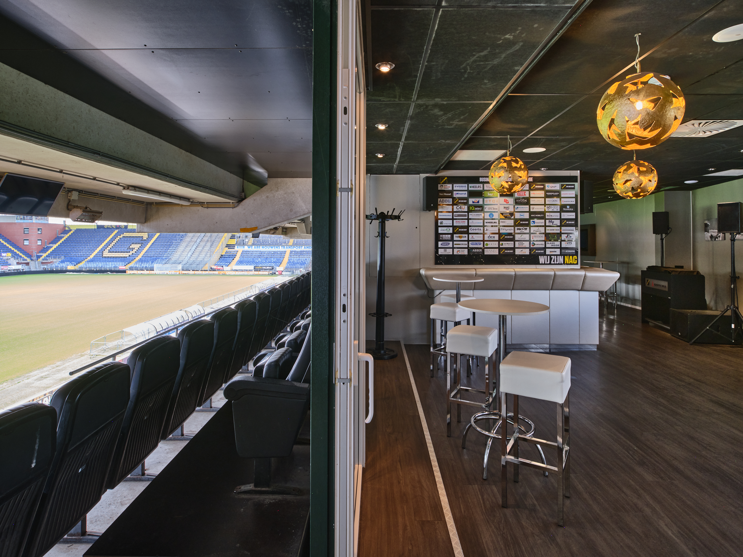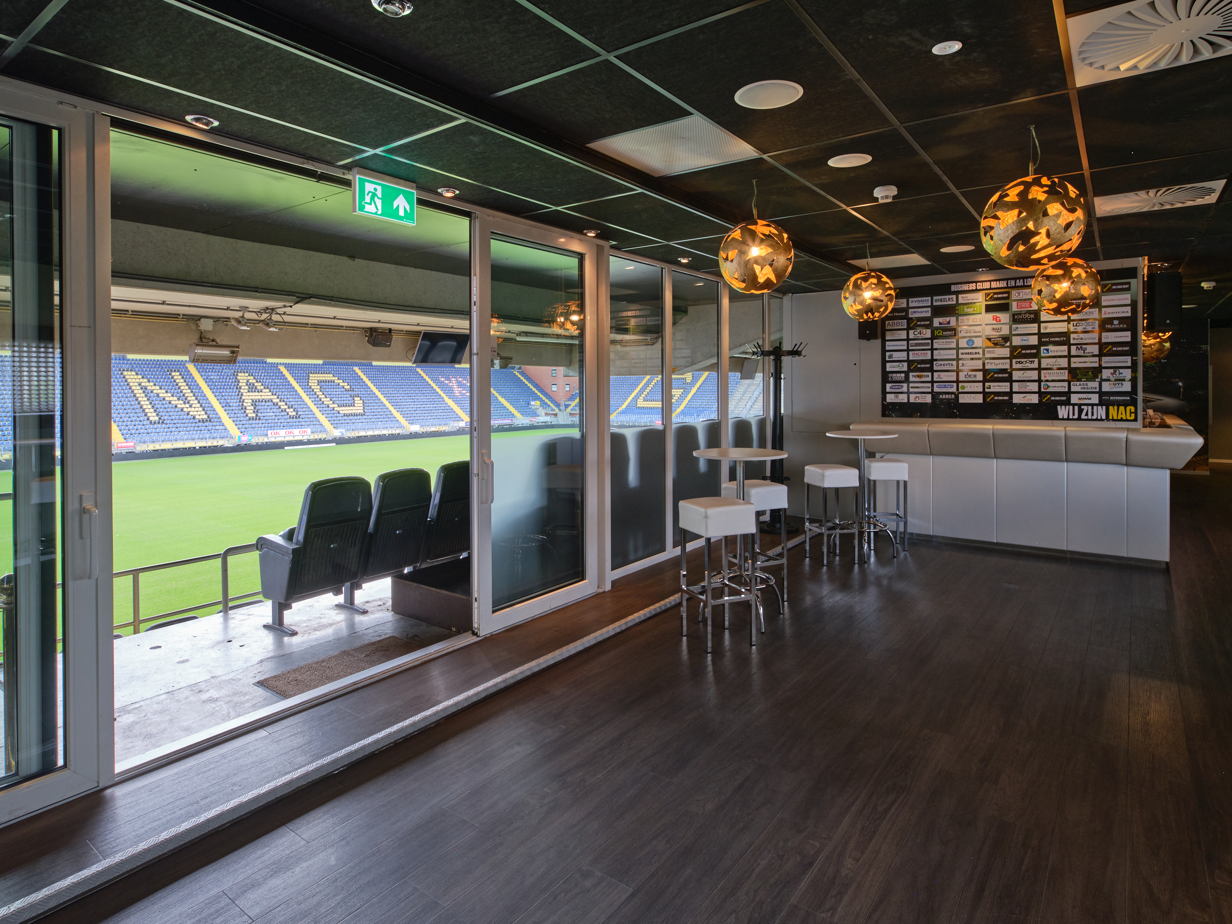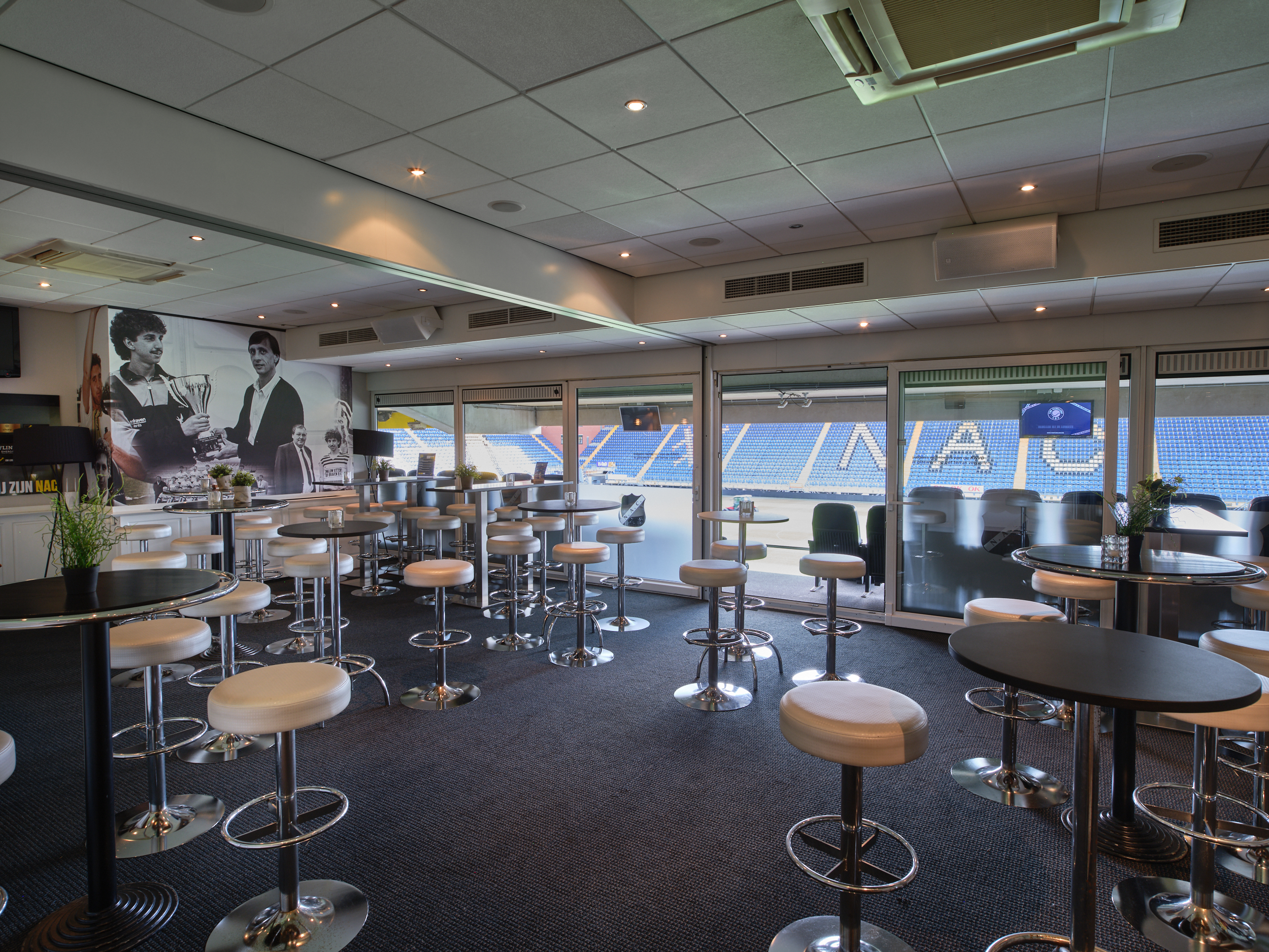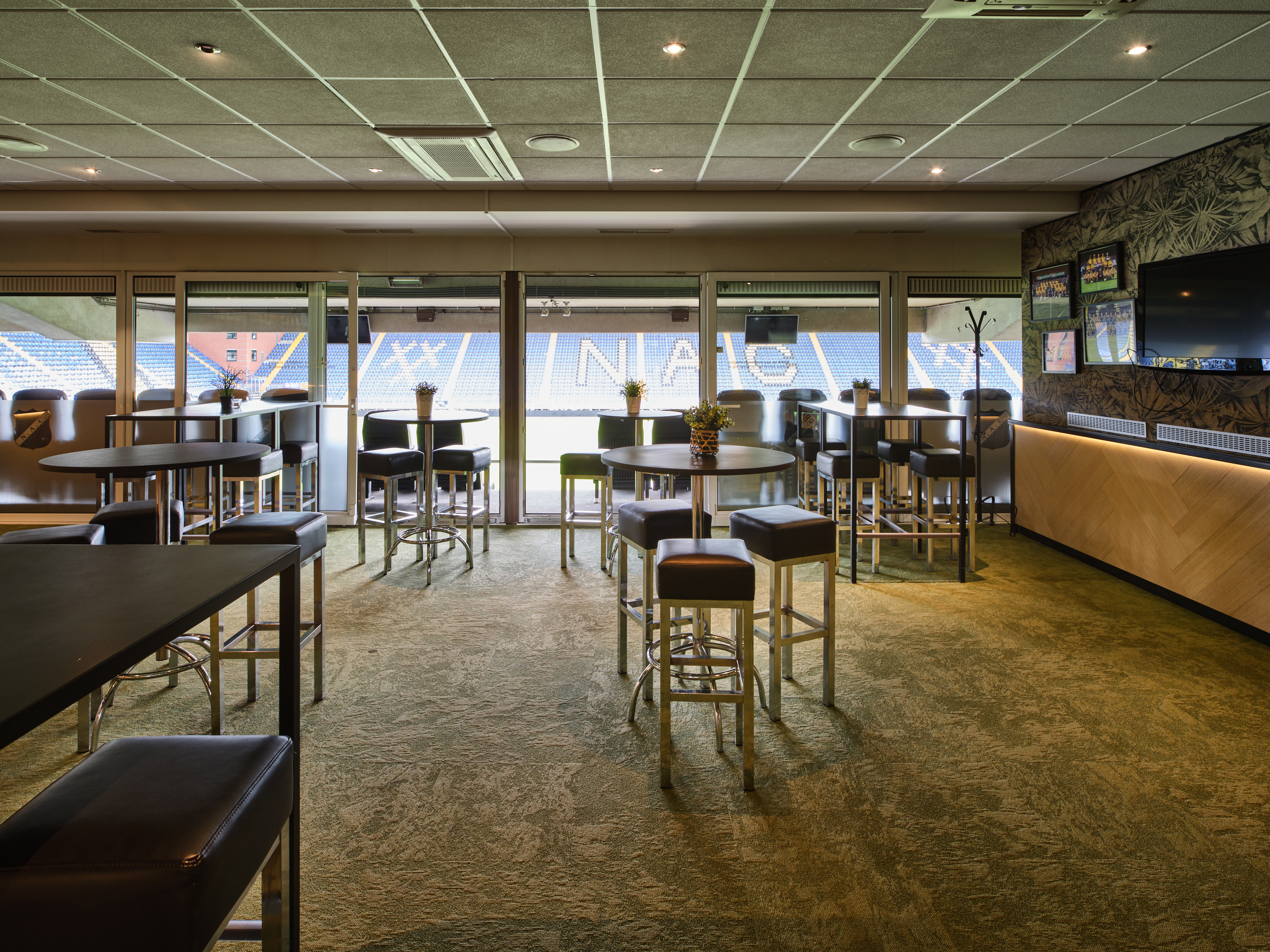 Uitzicht op het veld met een drankje in de hand? Beleef het ultieme NAC gevoel in een van onze lounges op de tweede etage. De lounges zijn sfeervol ingericht en met uitzicht op het veld ademen ze voetbal. Geschikt voor een gezellige borrel, maar ook te gebruiken als breakout room.